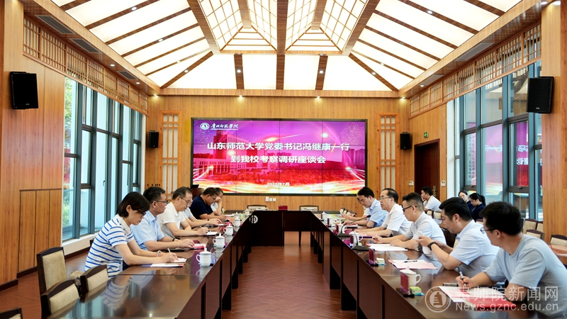 本网讯 7月31日,山东师范大学党委书记冯继康、党委副书记万光侠一行6人到我校考察交流,我校党委书记战勇、党委副书记高勇、校长助理刘海江以及党政办、教务处、科研处相关人员参加交流活动。