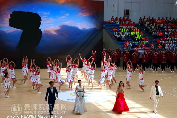 本网讯 6月20日下午,由贵州省教育厅、贵州省体育局主办,贵州医科大学承办的贵州省第四届大学生运动会开幕式在贵州医科大学花溪校区举行。来自贵州大学、贵州师范大学、贵州财经大学、伟德国际1949官网、贵阳中医学院、贵阳幼儿师范高等专科学校等省内高校参加开幕式。我校副校长令狐荣锋出席开幕式;艺术学院院长马关辉、声乐教师刘昊佳、何晶、王铎受邀为开幕式献歌《青春 朝阳》。