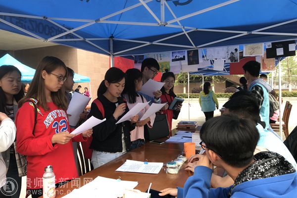 为确保活动顺利开展,图书馆读者协会成员做了大量前期准备工作,包括活动策划、活动场地申请、宣传海报制作与张贴,联系书商赠书事宜等。4月18日至19日,读协成员们布置场地,搬图书、摆奖品、搭帐篷、拉横幅,放展板……准备工作井然有序。中午十一点,活动正式开始。“世界读书月”系列活动形式多种多样,包括“图书赠送”(新知专业图书有限责任公司)、 “移动图书馆数字资源推送”、 “超期图书免费回家——图书馆滞纳金赦免活动”、“捐书”、“图书交换”、“好书推荐”、“阅读便利贴<贴心愿墙>”、“今天我荐书”、“玩转图书馆——阅读、学习、我问、你答”、“横幅签名”、“经典诵读”、“三行情书作品展”、 “2017图书馆利用将星公示”、“‘三行情书’获奖公示”、“‘与经典同行’获奖公示”、“‘信息检索素质教育’优秀助教公示”、“毕业论文答疑解惑”等,并与乌当区图书馆合作推出“一封家书”、“金话筒全民朗读大赛”活动,受到读者的热烈追捧。并于活动当天下午邀请周复刚教授在大业青藤咖啡文化中心与同学们现场分享自己人生的“阅读马拉松”,丰富了阅读活动的内容与形式。读者只要参加图书馆阅读推广系列活动,便能领取图书一本或纪念品一份,同时获得图书滞纳金赦免特权。全校师生踊跃参与活动,截止至当天下午四点,共送出图书七百余本,礼品三百余份,赦免25位读者图书滞纳金。千名师生参与活动,亲身感受和体验图书馆的海量数字资源及新技术新服务。“世界读书月”系列活动得到了广大师生的积极响应和高度评价。