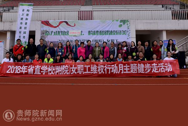 本网讯 阳光正好,微风不燥。3月27日下午,由省教育工会主办、贵州财经大学承办的“奋力建功新时代,构建和谐校园美”2018年省直学校(附院)女职工维权行动主题健步走活动,在贵州财经大学花溪校区体育场举行,我校工会组织四十余名教职工参加了此次活动。