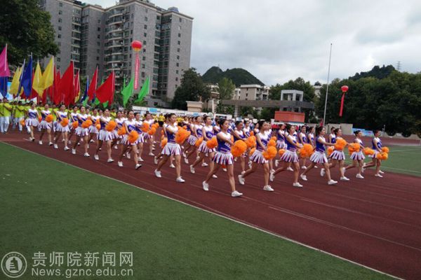 本网讯 9月28日上午,贵阳市乌当区第一届大健康运动会开幕,开幕式上,3000余人的入场队伍和展演队伍进行了精彩的文体展示,展现出全民健身的良好氛围。伟德国际1949官网派出花球、彩旗、引导员、志愿者、跆拳道、花样跳绳等入场和表演队伍共450人助力本次开幕式,副校长令狐荣锋和体育学院黄伟明院长参加了此次运动会开幕式。