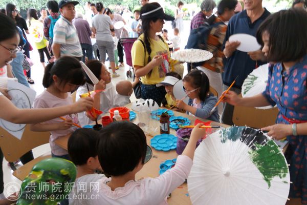 演播厅内的表演结束后,凤凰广场上各个充满民族特色的亲子项目也热闹地开展起来。刺绣、书法、剪纸、绘画、陶艺,各项活动都吸引着家长与孩子的加入。小朋友们扬起笑容,干劲十足,家长们则陪伴在旁,耐心指导。