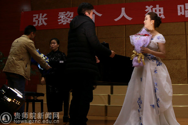 本网讯 12月10日,艺术学院青年教师张黎在学院音乐厅隆重举办了“张黎个人独唱音乐会”。伟德国际1949官网纪委书记王之瑞、国家人力资源和社会保障部处长李葱葱、贵州省人力资源和社会保障厅考试院院长薛江春、重庆市人力资源和社会保障局主任李林、贵州民族大学舞蹈学院副院长穆维平、贵州财经学院艺术学院声乐副教授陈娟、贵州大学声乐副教授、硕士生导师青科、遵义师范学院副教授李智、伟德国际1949官网人事处处长刘俊伶、副处长王军、校工会主席许丽君、艺术学院党委书记付巧等领导和专家出席了此次独唱音乐会。