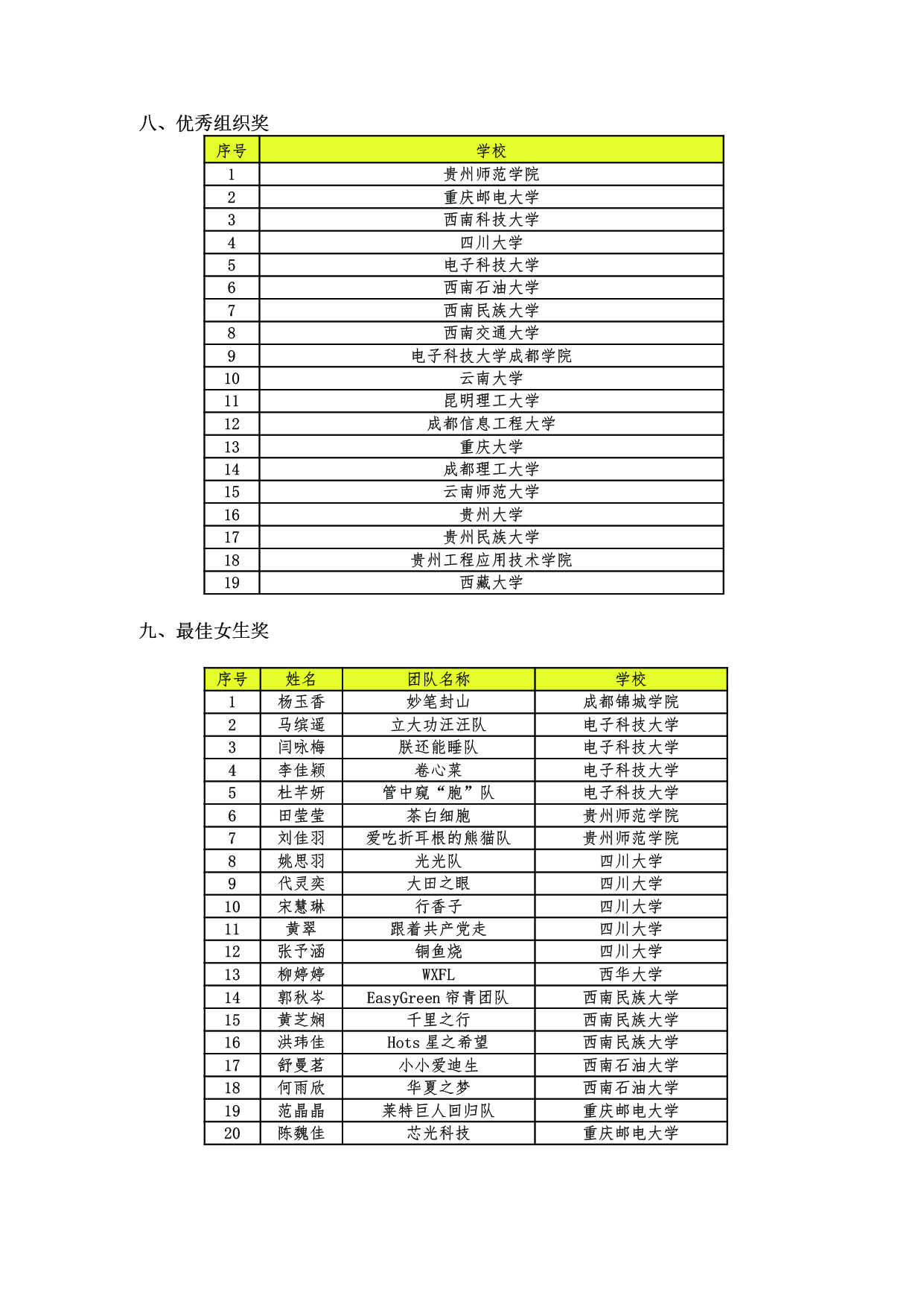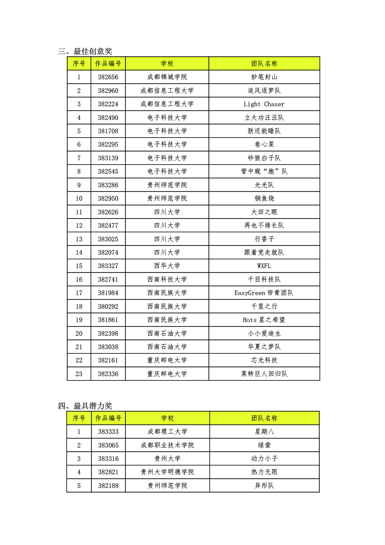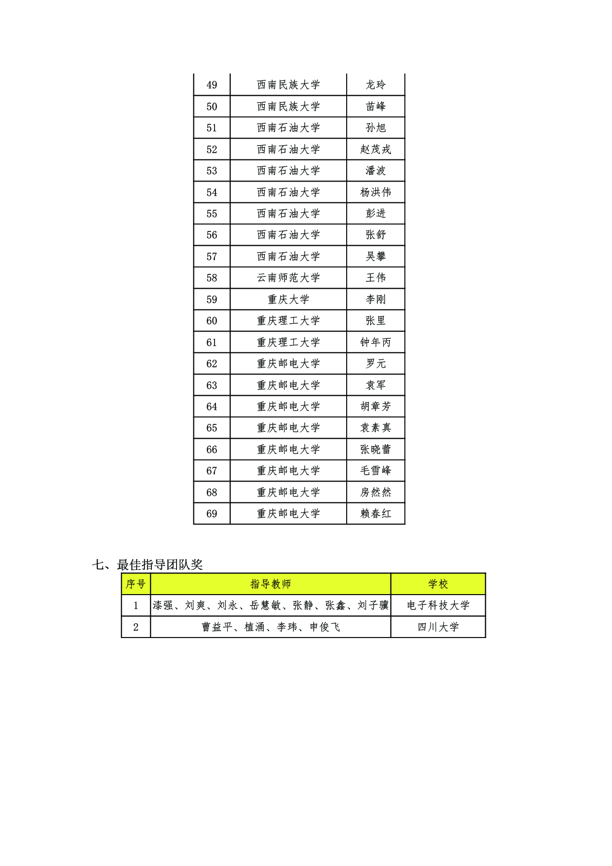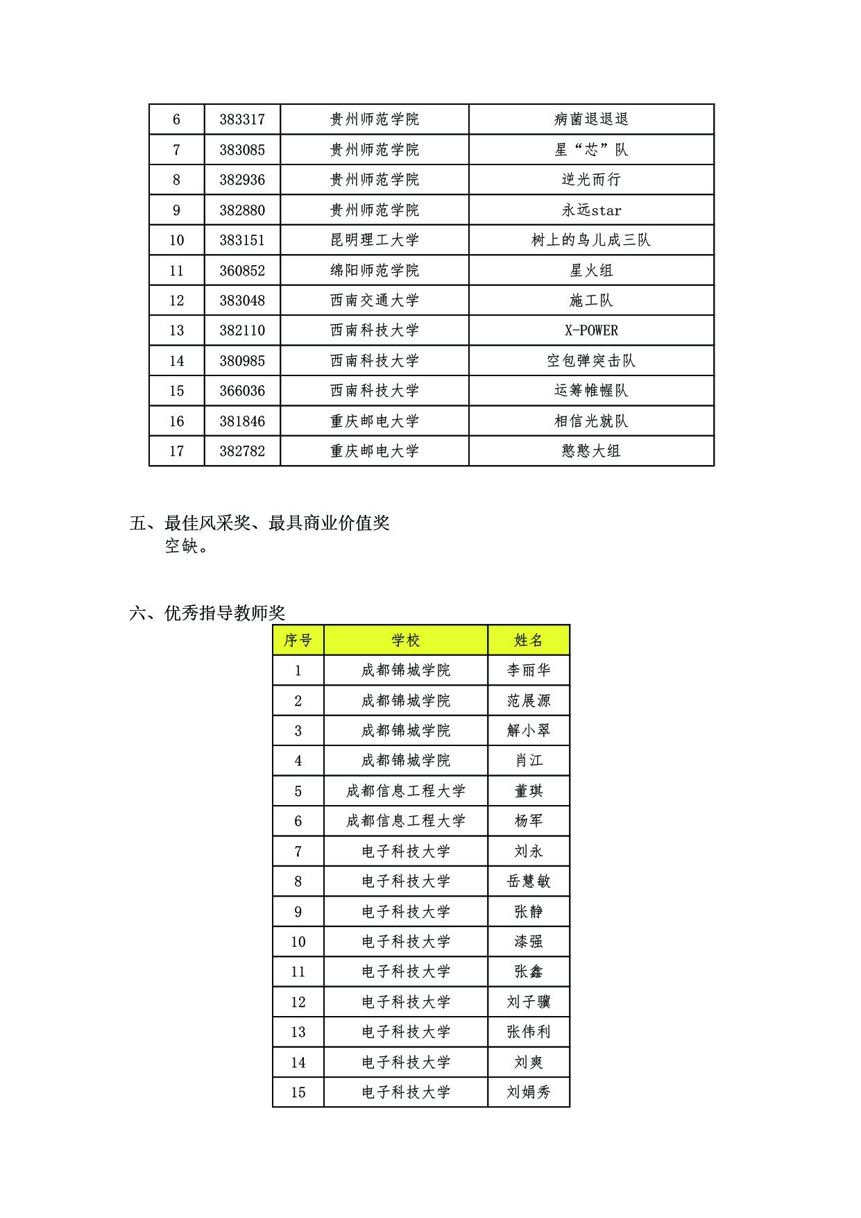 第十届全国大学生光电设计竞赛西南区赛获奖名单及入围国赛公布.pdf