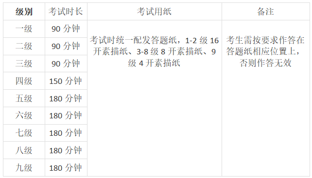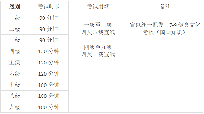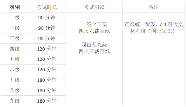 上午考试科目:素描(1-9级)、动漫画(1-9级)、国画(1-9级)