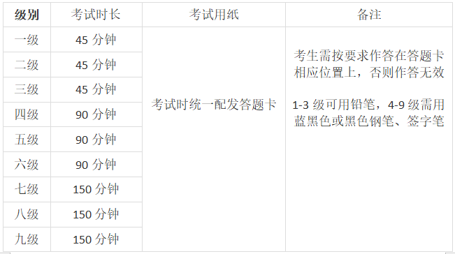 初次报考的学生,建议报考1-3级中任一级别,初学者和低龄儿童建议不要报考。 |