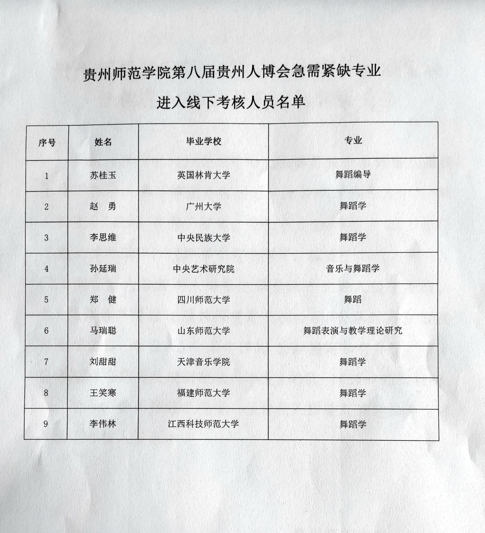 附件:伟德国际1949官网第八届贵州人博会急需紧缺专业进入线下考核人员名单