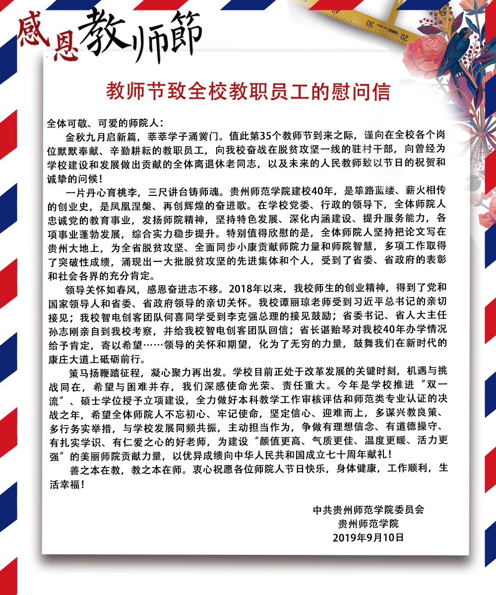 教师节致全校教职员工的慰问信