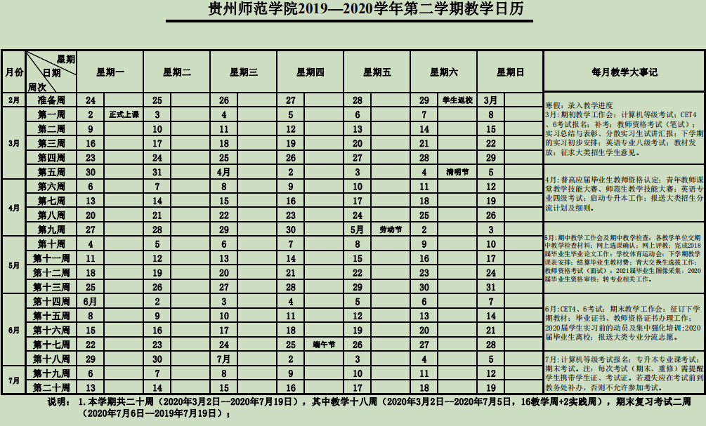 伟德国际1949官网2019—2020学年教学日历