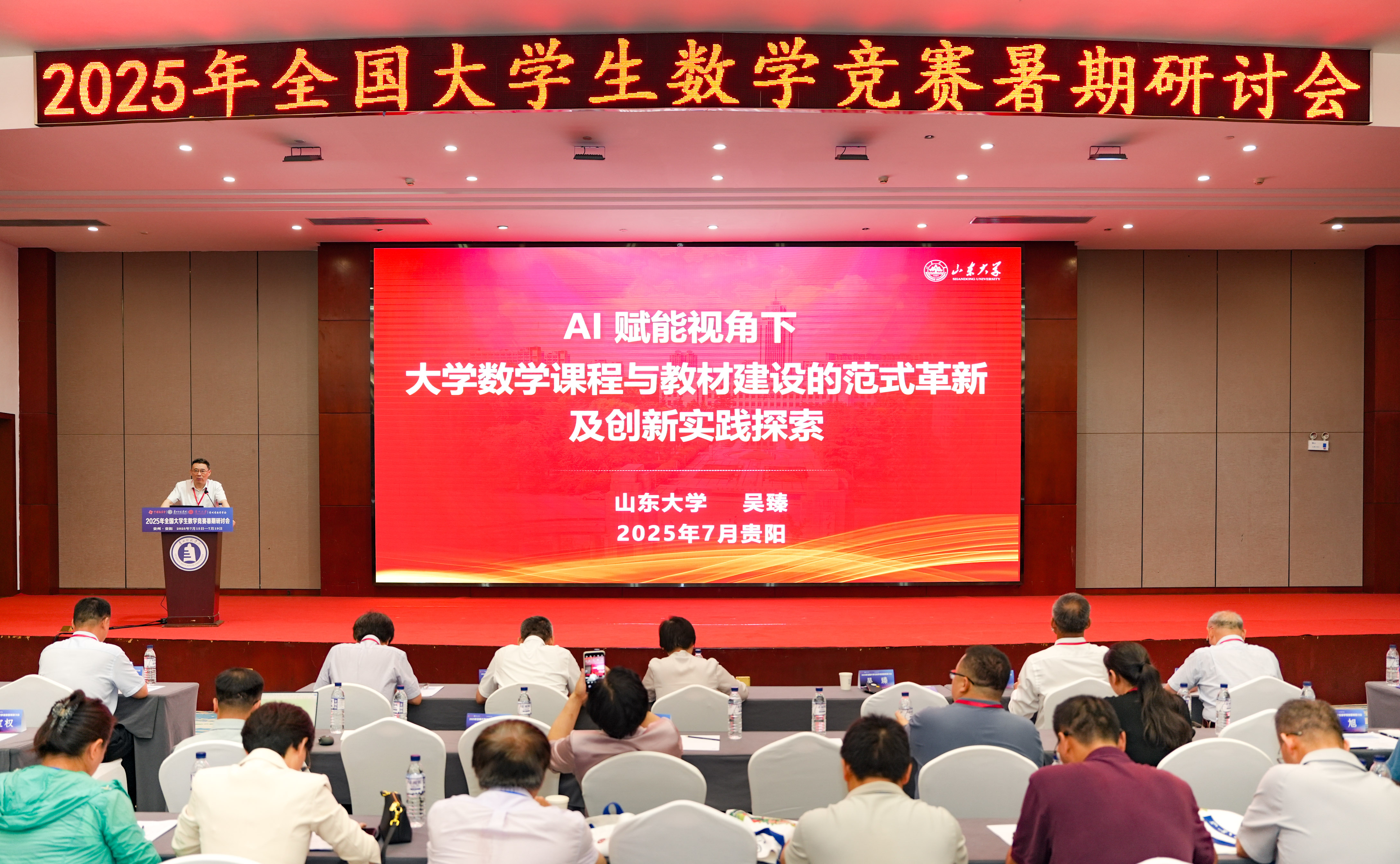 中国数学会副理事长、山东大学常务副校长吴臻教授以“AI赋能视角下大学数学课程与教材建设的范式革新及创新实践探索”为题作大会报告,系统阐释了大学数学课程是非数学类各专业的基础必修课,同时也为大学生数学竞赛提供直接的知识支撑,是竞赛成绩提升的核心理论基础与思维保障。