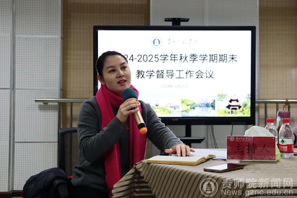 本网讯 12月25日下午,我校2024-2025学年秋季学期期末教学督导工作会议在信息楼1210会议室召开,校党委副书记邹晓青出席指导工作,第六届校级教学督导全体成员、学院二级督导代表、教务处处长、质评办全体人员参加会议。会议由教学质量监测与评估办公室主任李艳琴主持,会议分为专题学习、总结汇报和交流研讨三个阶段。