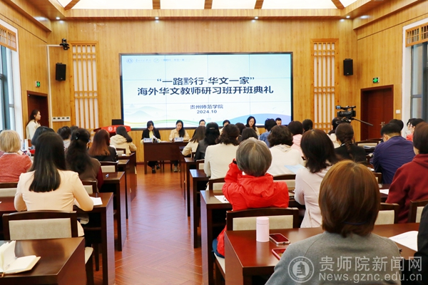 本网讯 10月10日上午,伟德国际1949官网2024年“一路黔行·华文一家”海外华文教师研习班开班典礼在印山书院二楼报告厅隆重举行。来自美国、加拿大、德国、荷兰、法国、新加坡、越南、马来西亚、泰国等17个国家的70位海外华文教师参加了开班典礼并开启为期12天的研习之旅。