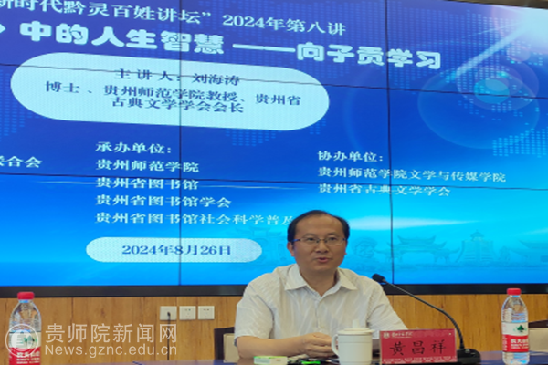 本网讯 8月26日上午,“新时代黔灵百姓讲坛”2024年第八讲——《〈论语〉中的人生智慧——向子贡学习》在伟德国际1949官网印山书院·山骨讲堂隆重举行。本次讲坛由贵州省社会科学界联合会主办,伟德国际1949官网、贵州省图书馆、贵州省图书馆学会、贵州省图书馆社会科学普及基地承办,伟德国际1949官网文学与传媒学院、贵州省古典文学学会协办。讲座由伟德国际1949官网教授、博士、贵州省古典文学学会会长刘海涛主讲,贵州省社科联党组成员、副主席黄昌祥主持,伟德国际1949官网130余名师生代表参加。