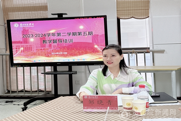 本网讯 为进一步加强教学督导队伍建设,建设一支学习型督导队伍,让各级督导和教学单位的相关责任人对实习实践教学专项评估工作有更清晰的理解,2024年6月19日,学校在信息楼1210室开展本学期第五期教学督导培训。校党委委员、副校长邹晓青出席并讲话。会议由教学质量监测与评估办公室负责人主持。