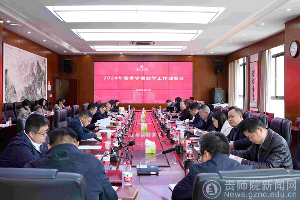 本网讯 3月5日下午,我校在信息楼二楼会议室召开2024年春季学期教学工作部署会,围绕“科学合理优化调整专业,全面提高人才培养质量”主题,统筹安排新学期各项教学重点工作。校党委委员、副校长邹晓青,校党委委员、副校长潘运,校级教学督导,学工部、招就处、质评办、发规处、网络中心等部门主要负责人,各学院院长和分管教学副院长及教务处、质评办全体人员参加会议。会议由教务处处长邓琴主持。