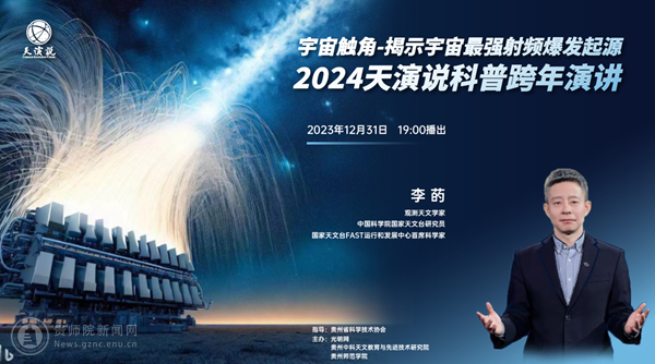 本网讯 为推动贵州科技与文化深度融合,服务贵州天文科技创新高地建设,赋能贵州经济社会高质量发展。12月31日晚7点,由贵州省科学技术协会指导,伟德国际1949官网、贵州中科天文教育与先进技术研究院联合主办的“2024天演说科普跨年演讲”将在我校开讲。