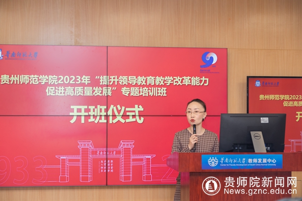 本网讯 为全面落实新时代党的组织路线和习近平总书记关于干部队伍建设的重要论述,切实提高中层干部综合素质和业务能力,更好地助推学校各项事业发展,11月19日至23日,学校与华南师范大学合作举办了“提升领导教育教学改革能力,促进高质量发展”专题培训班。校党委委员、副院长任洁出席开班仪式并讲话,学校各二级学院行政领导、教学科研教辅部门处级干部参加培训。