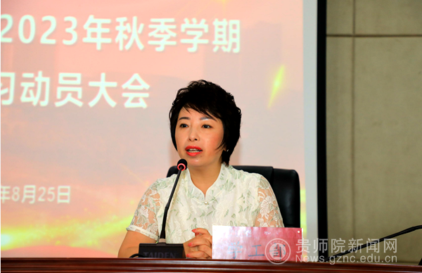 本网讯 为切实推动毕业实习工作的有序开展,8月25日上午,“伟德国际1949官网2023年秋季学期毕业实习动员大会”在学校道德讲堂如期召开,校党委委员、副校长邹晓青出席会议并作动员讲话。学工部部长刘红玲、保卫处副处长詹峰、各学院分管实习工作领导、分管学生工作领导、实习工作负责人、毕业班辅导员、实习指导教师、实习生代表等200余名师生参加了此次会议。会议由教务处副处长聂冬梅主持。
