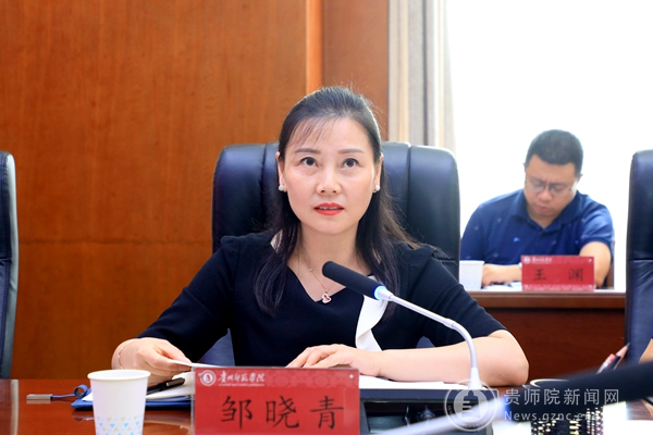 邹晓青简要介绍了学校发展历程和贵州省中小学地方(校本)课程教材建设研究基地建设情况。她指出,我们坚持以问题为导向,结合基地职能定位和特色教育强省要求,充分突出我校在资源、环境、文化和教育等方面的特色进行课程教材研究;以团队建设为保障,围绕课程方案的转化落地,教学方式变革,科学素养提升、评价实施等开展专项培训和跟踪指导;以成果产出为导向,关注学生需求和特色,共同协同参与建设地方课程和校本课程开发机制,助力实现全员全面育人和高质量育人;以服务为宗旨,充分发挥体制机制的引导作用,规范课程教材建设管理制度,共同推动落实好课程教材建设研究工作。
