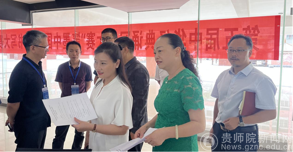 本网讯 7月6日,第五届中华经典诵写讲大赛"笔墨中国"汉字书写大赛贵州赛区初复赛评审会在伟德国际1949官网举行。学校党委委员、副校长邹晓青、教务处处长邓琴到评审现场进行指导。本次贵州赛区复赛及评审由美术与设计学院具体承办。