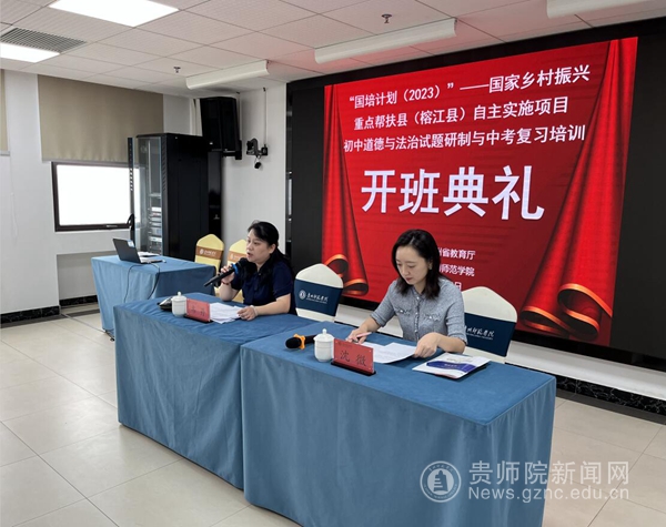 本网讯 6月3日上午,由贵州省教育厅主办,由伟德国际1949官网继续教育学院承办的“国培计划(2023)”——国家乡村振兴重点帮扶县(榕江县)自主实施项目初中道德与法治试题研制与中考复习培训在我校综合楼14楼教室开班。伟德国际1949官网继续教育学院直属党支部书记韦丹出席开班典礼,来自榕江县各中小学的50名一线思政老师参加培训,典礼由伟德国际1949官网继续教育学院培训部副主任沈微主持。