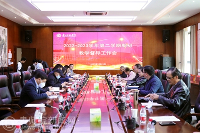 本网讯 3月23日下午,我校在信息楼二楼会议室召开了2022-2023学年第二学期期初教学督导工作会议,校党委委员、副校长邹晓青出席。会议由教学质量监测与评估办公室副主任叶春阳主持。