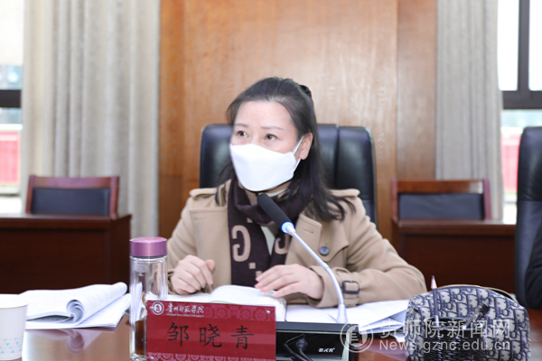 推进会上,校党委委员、副校长,本科教育教学审核评估办公室主任邹晓青高度肯定了专班工作组前期卓有成效的准备工作。她指出,本科教育教学审核评估是当前学校的重点工作,与学校的自身建设休戚相关,抓住本次培训机会,认真学习审核评估工作的精神和内涵,全力以赴做好学校审核评估工作,并就下一步工作进行了安排部署。她强调,统筹推进审核评估工作保质保量完成,一要统一思想,要充分认识到评估工作的重要意义;认真学习本科教育教学审核评估相关文件、评估方案,将审核评估工作时间表装在心里,抓在行动。二要紧盯评估目标,精准把握审核评估的核心要义;要坚持立德树人的评估导向、突出育人的评估内涵,聚焦教育教学改革的评估目标,以课程改革突显学校评估特色。三要强化责任担当,以“三个到位”“四化”推动学校审核评估工作有序推进;切实落细落实组织到位、责任到位及协调到位,坚持问题导向,明确时间表、路线图,坚持审核评估工作项目化、项目清单化、清单责任化、责任时限化,切实推动学校教育教学工作高质量发展。