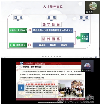 文学与传媒学院院长杨波重点交流了学院在抓好教研活动,建设一流课程、建设优质团队等方面举措及取得的成绩,并针对“名师示范课+年轻教师成长课+新教师见面课”等公开课教研活动经验进行了重点汇报,对学院逐步构建“金师--金课--金专”一体化发展思路和大家进行了分享。