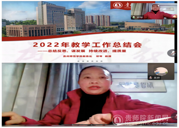 本网讯 为做好本年度教学工作总结,统筹推进2023年教学各项工作,12月27日,我校召开2022年度教学工作线上总结会议。会议由教务处处长邓琴主持,学工部、招就处、质评办、教育信息网络中心主要负责人,各学院院长和分管教学副院长,教务处全体人员参加会议。校党委委员、副校长邹晓青出席会议并作总结讲话。