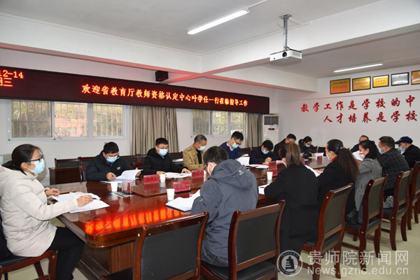 本网讯 为加快推动我校中小学教师资格考试面试考点建设,12月14日,贵州省教育厅教师工作处处长叶学仕一行到我校开展调研并座谈,同行的有贵州省教师发展中心主任李以盛,贵州师范大学教师教育学院党委书记潘国昌、院长冉源懋以及相关工作人员。我校党委委员、副校长邹晓青与叶学仕一行进行交流座谈,教务处、教育信息网络中心相关负责人参加会议,座谈会由教务处处长邓琴主持。