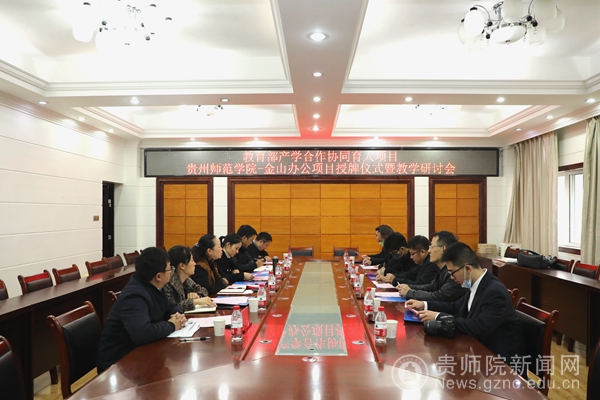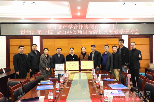 本网讯 11月16日上午,教育部产学合作协同育人项目授牌仪式,暨伟德国际1949官网与珠海金山办公软件有限公司合作教学研讨会在数学与大数据学院会议室举行。教务处长处长邓琴、科研处副处长李佩、数学与大数据学院党委书记李艳琴、副院长熊伟程、物联网工程系主任崔忠伟、计算机科学与技术系主任暨项目负责人左欣,金山办公高级总监万斌、生态总监肖璨、产学项目负责人邓华、技能(KOS)认证贵州负责人丰佩虞,贵州省服贸协会秘书长张树军等出席授牌仪式及研讨会。会议由数学与大数据学院党委书记李艳琴主持。