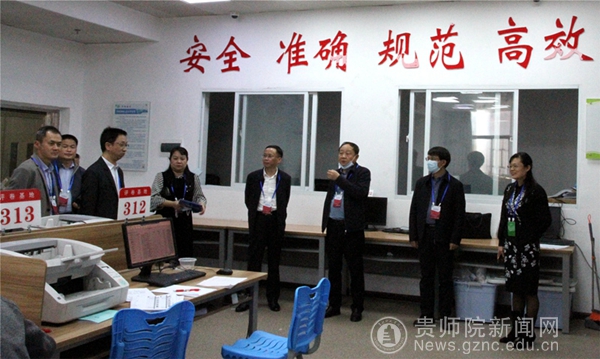本网讯 11月10日下午,省招生考试院党委书记田军、院长吴作然、副院长罗忠勇、办公室主任郝幸,省会考办主任张祥云到我校评卷基地巡视,伟德国际1949官网党委副书记熊世桓、校评卷基地办公室副主任、继续教育学院直属党支部书记韦丹、副院长何荣陪同。
