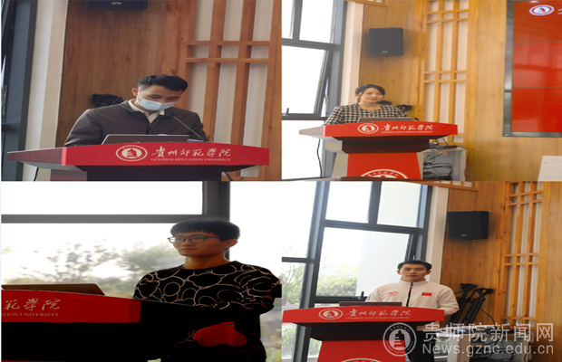 参赛项目学生代表刘田、冉茂军作表态发言,将竭尽全力,拿出破釜沉舟、背水一战的勇气为校出征,和团队队员们携手奋进,发扬“咬定青山不放松”的师院精神,做好赛前准备,敢闯敢创,冲刺国金,以最饱满的精神面貌迎接国赛。