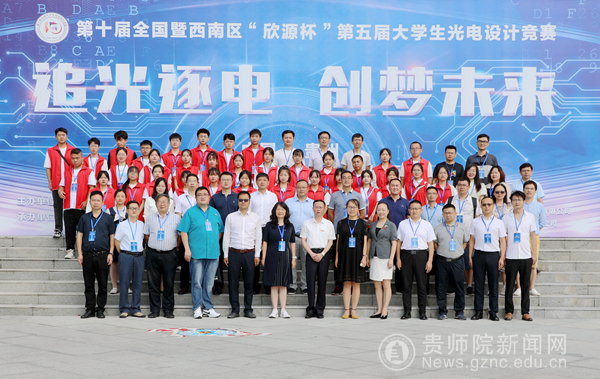 本网讯 2022年8月1日,第十届全国大学生光电设计竞赛(西南赛区)开幕式在我校印山书院二楼山骨讲堂举行。本次大赛由中国光学学会主办,伟德国际1949官网物理与电子科学学院承办,全国大学生光电设计竞赛西南区竞赛委员会主任四川大学曹益平教授、副主任重庆大学光电工程学院院长郭永彩、电子科技大学光电科学与工程学院副院长刘爽、昆明理工大学理学院教授张亚萍,伟德国际1949官网党委委员、副校长熊世桓,物理与电子科学学院党委书记熊德永,党委副书记于治鳞,副院长陈德良、刘高福,党政办副主任杜彪,贵阳欣源电子科技开发有限公司经理李洪,竞赛委员会委员、评审专家以及各参赛师生于线上线下同步参会。开幕式由伟德国际1949官网教务处处长邓琴主持。