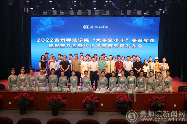 本网讯 为全面贯彻习近平总书记关于教育的重要论述,认真落实省委、省政府印发《关于全面加强和改进新时代学校美育工作的实施意见》文件精神,厚植“美的教育”理念,6月29日下午,伟德国际1949官网举行了“大手牵小手”美育实践成果推介会暨中小学美育教程发布会。省教育厅体卫艺处副处长(主持工作)曾洪波,贵州省舞蹈家协会原主席沈毅,贵州省民族歌舞团原团长高聪,我校党委委员、副校长邹晓青,教务处处长邓琴,美育研究中心主任、美术与设计学院院长聂森,音乐舞蹈学院党委书记付巧、院长马关辉以及乌当区、云岩区教育主管部门相关领导,文化部门相关领导,艺术界相关人士和部分中小学校长与教师代表。