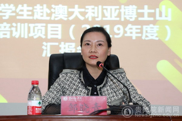 本网讯 10月15日下午,我校学生赴澳大利亚博士山学院培训项目(2019年度)汇报会在道德讲堂召开。副校长邹晓青出席会议。各学院分管外事的院领导,外事专员教师及学生代表,参加此次培训项目的学生参加会议。会议由对外交流合作处处长张瑶主持。