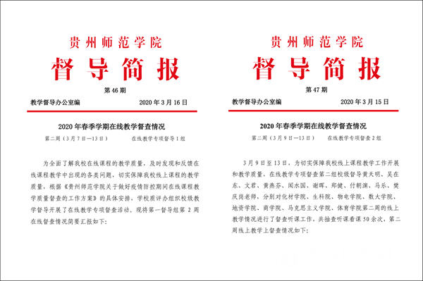 本网讯 为贯彻落实教育部,贵州省教育厅“停课不停教、停课不停学”的要求,克服新型冠状病毒疫情影响,学校制定了《伟德国际1949官网2019-2020学年第二学期疫情防控期间延期开学在线教学工作方案》,鼓励任课教师充分发挥网络教学资源优势,认真做好各项教学准备工作,最大限度保障广大师生疫情防控期间的课程教学和人才培养工作。3月2日起,线上教学全面开展,为切实保障在线教学质量,及时掌握在线教学情况,校院两级监控联动,“三化”并举 ,全力保障教学质量。
