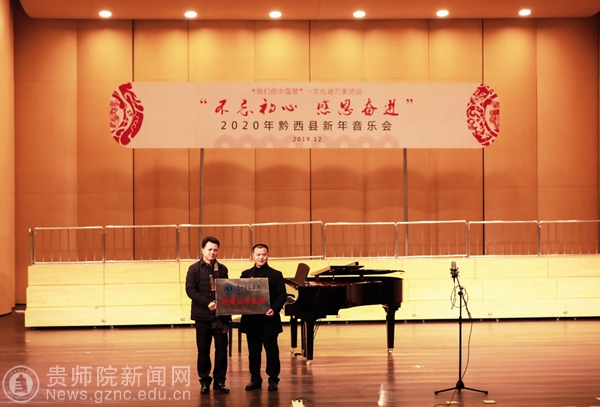 在音乐会正式开始前举行了校地合作授牌仪式,由我校音乐舞蹈学院院长马关辉教授向黔西县人民政府副县长曾科授牌,在黔西县建立伟德国际1949官网校地合作基地。