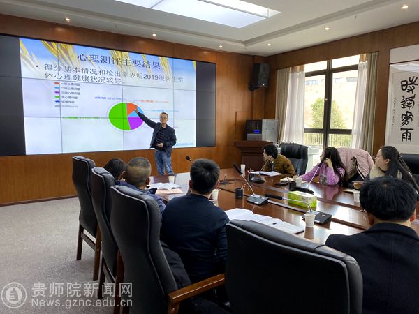 首先,谢其利代表心理健康教育与咨询中心汇报了2019级新生心理健康测评的基本情况和主要结果,并将2016年至2019年四年来学生的整体情况从性别、生源地、主要问题类型进行了综合对比。接着,外国语学院谭定德、历史与档案学院吴靖霞、化学与生物学院何毅、音乐舞蹈学院付巧、美术与设计学院石含洲等各学院领导就学生工作中的实际案例进行了沟通交流,并对应急情况下的经费保障与人员保障、大二大三学生的测评状况、辅导员关注重点学生的方式等问题提出了良好建议,交流过程体现出各二级学院对学生心理健康工作的重视以及用心用情为学生服务的情怀。