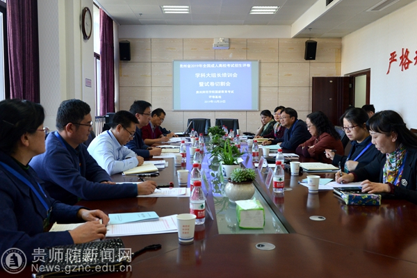 本网讯 10月29日下午,贵州省2019年10月成人高校考试招生网上阅卷学科大组长培训会暨试卷切割会在伟德国际1949官网国家教育考试评卷基地召开。贵州省招生考试院成招处处长黄克勇、伟德国际1949官网评卷基地办公室负责人赵德肃、何荣,伟德国际1949官网各学科阅卷大组长出席会议。会议由伟德国际1949官网评卷基地办公室主任、继续教育学院院长赵德肃主持。