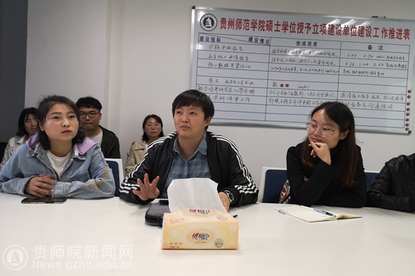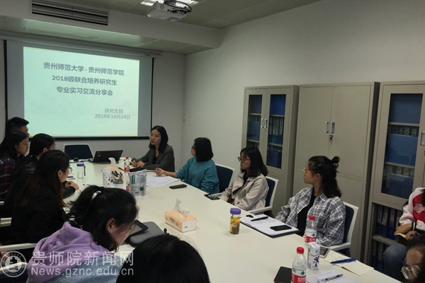 本网讯 10月14日下午,我校与贵州师范大学联合培养的2018级研究生专业实习交流会在信息楼1102会议室举行。我校研究生院副院长黄丹、辅导员吴光梅,全体2018级联合培养研究生参加了会议。