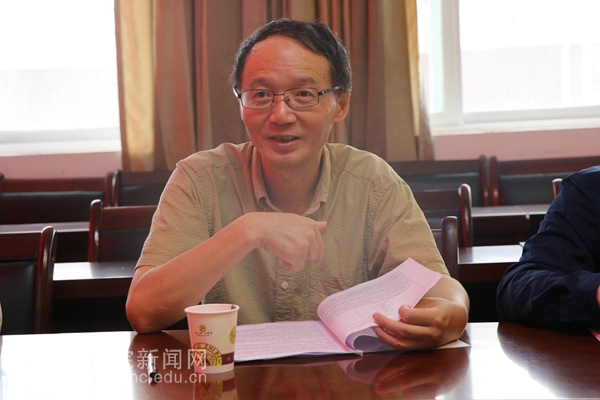 本网讯 9月6日上午,文学与传媒学院在学院会议室举行与贵州师范大学联合培养研究生读书会(第一期),本次读书会邀请到贵州师范大学文学院副教授唐定坤、南明区教育局教师资源与学习中心钱萍老师,本届研究生导师文学与传媒学院退休教授吴俊、博士周周,联合培养的研究生姜竹、宋兰、徐超参加。文学与传媒学院党委书记韦丹、副院长杨波出席读书会。
