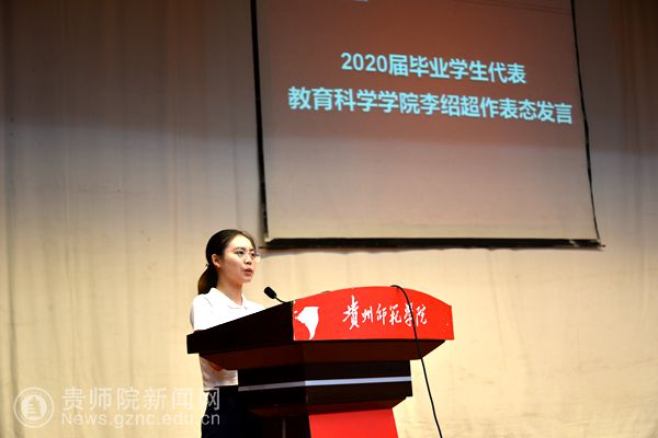 教育科学学院的李绍超同学代表即将“出战”的全体实习同学站上发言席,致谢学校提供的锻炼平台、感恩老师们的辛苦培育,畅想即将迎接的挑战,抒发自己的激情。同时做出承诺:学思行相并重;厚乎德行、辩乎言谈;摆正心态、服从安排。作为师院学子,秉承“为人师表”的校训,践行师院精神。