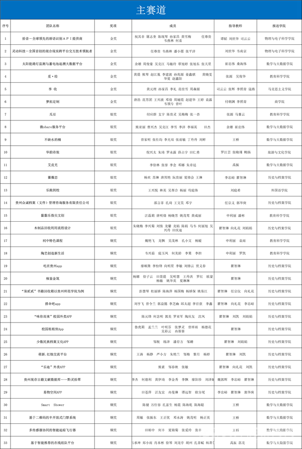 今年我校共有237支队伍1172人参加大赛,来自各学院二十二支队伍入围了决赛。本次决赛邀请来自贵州师范大学创新创业学院院长周勋、贵州大学教务处副处长黎应飞、贵州贵漂科技有限公司总经理杨文德、杭州心养文化创意有限公司董事长沈利、贵州色谱国家级众创空间CEO蒋睿担任评委。