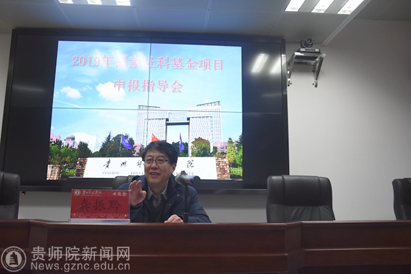 本网讯 1月2日下午在学校信息楼1110会议室召开了我校2019年国家社科基金项目申报指导会,会议邀请到贵阳学院原校长龚振黔教授做现场指导。会议由副校长余维祥主持,各学院、科研机构副高及以上职称老师、博士、省哲社在研项目负责人以及其他拟申报国家社科基金老师参加了会议。