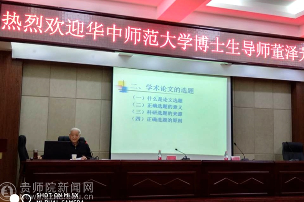 董泽芳围绕学术论文的特点与价值、正确选题的意义与原则、学术论文的写作与评价、论文投稿的策略与技巧等四个方面展开讲解。董泽芳认为,学术论文具有学术性、科学性、创造性和通俗性四个方面的特点,学术论文的选题必须从提出问题开始,研究者必须把握学术研究中的真问题与前沿问题,重视当前教育研究中的前沿问题,识别教育研究中假问题的特征及其表现,发现教育研究中前沿的真问题。董泽芳还对正确选题的8个层面进行详细梳理,提出正确选题要贴近现实、独具慧眼、小题大做和量力而行,还对论文写作的基本步骤,评价一篇好文章的12个标准,论文投稿的策略、态度与禁忌等进行深入浅出的阐释。