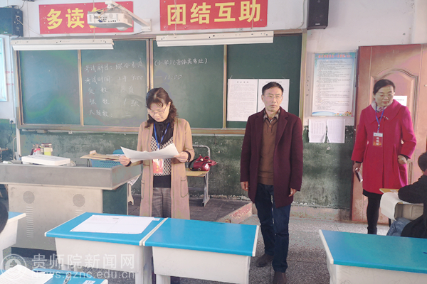郭文在李佩的陪同下对乌当中学考点进行巡视