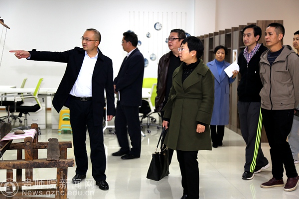 许碧一行先后到大学科技园、创新创业学院、大学生文化创意基地、大学生互联网+创新创业中心考察入园创业企业及孵化场地,最后在大枼青藤咖啡空间召开汇报会。