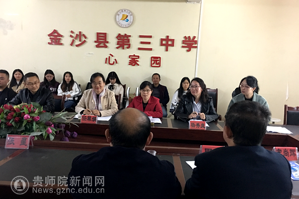 乌当二中巡视结束后,郭文一行赶赴金沙县,第一站来到金沙三中,与教育局领导、各实习学校负责人及实习生们进行了深入交流和会谈。金沙三中校长王琰介绍了今年实习工作的基本情况。其他实习学校的领导、老师和师院的实习生代表也依次做了发言。实习生在发言中表示,师院老师千里迢迢前来看望她们,深受感动;金沙县教育局耐心、细致的安排实习生的生活和学习,所有的实习生都已正常开展实习工作,非常充实,收获很大,非常感恩实习学校和指导老师们的关怀和指导,今后将更加努力通过不断试讲和反思改进,圆满完成实习任务。金沙县教育局师资培训办公室主任周欣对师院的实习生给予高度肯定和认可,介绍了金沙教育局在安排师院实习生方面的组织保障、财力保障和制度保障,整个教育系统一盘棋,全方位保障实习工作圆满完成。