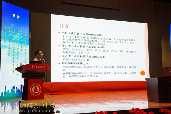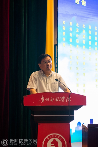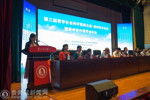 本网讯 6月9日,第三届哲学社会科学智库名家·贵州学术年会暨贵州省外语学会2018年年会在我校逸夫楼演播厅隆重召开,本次年会由贵州省社科联、贵州省外语学会主办,伟德国际1949官网外国语学院承办,出席开幕式的有我校郭文副校长、纪委书记王之瑞、省社科联副主席罗凌、省教育厅高教处处长邸姜涛、中国外语慕课联盟秘书长、北京外国语大学金利民教授、教育部高等学校英语专业教学分委员会秘书长、广东外语外贸大学冯光武教授及省内30多所大专高校近三百名代表。